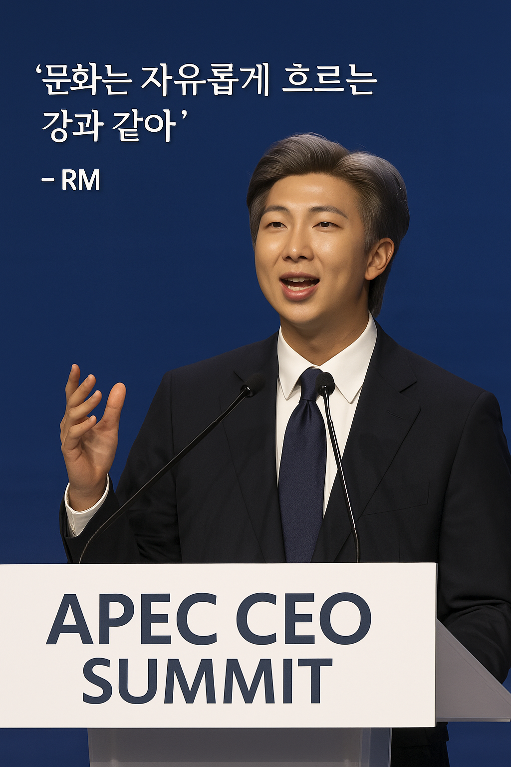 RM은 이날 *“APEC 지역 내 문화산업과 K-컬처 소프트파워”*를 주제로 연설하며, 문화의 본질과 K팝의 의미를 진심 어린 언어로 전했습니다.