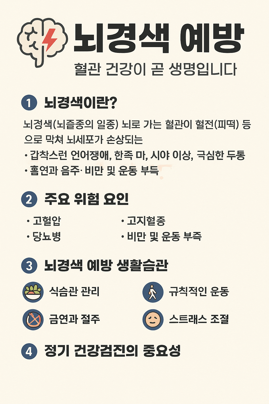 뇌경색은 갑자기 찾아오지만, 꾸준한 생활관리로 충분히 예방할 수 있는 질환입니다.